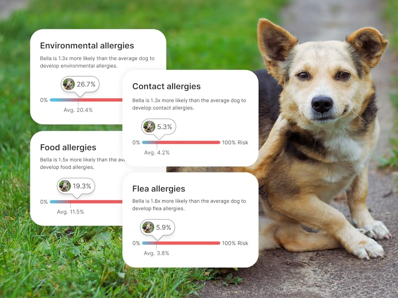 Only Embark provides DNA-based allergy insights to help keep your dog comfortable year-round. Get four personalized risk scores—environmental, food, contact, and flea—plus vet-approved tips on triggers, symptoms, and relief.